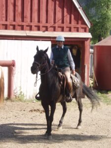 Linda Ballou enjoys being astride her horse at a guest ranch in Jackson, Wyoming,
