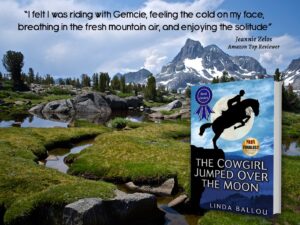 I see now how the independent, adventuresome qualities that move me forward are reflected in my characters. Gemcie, the protagonist in the Cowgirl Jumped Over the Moon needs to go to the mountains to find her way through deception, and betrayal in her young life. She is a world class equestrian groomed by a show mom who has pinned all of her hopes and dreams on her daughter.